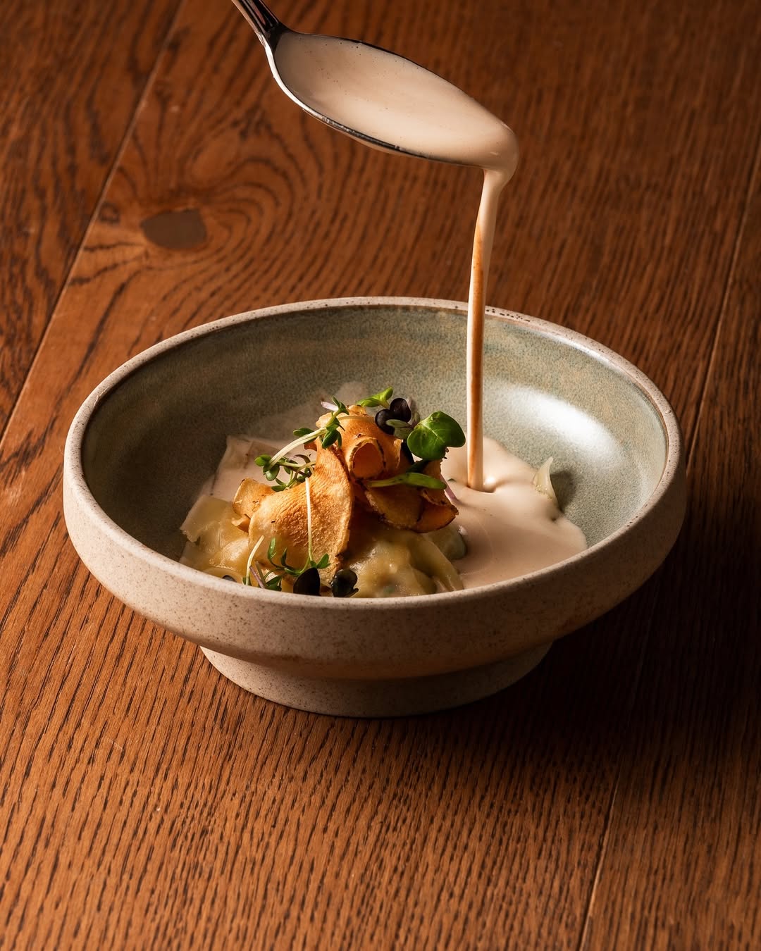 I likhet med interiøret, er menyen her preget av stilrene klassikere som kombinerer det fine med det folkelige. Her får du både japansk omakase, italiensk pizza og sesongbaserte småretter – alltid laget på lokale kvalitetsråvarer så langt det lar seg gjøre.