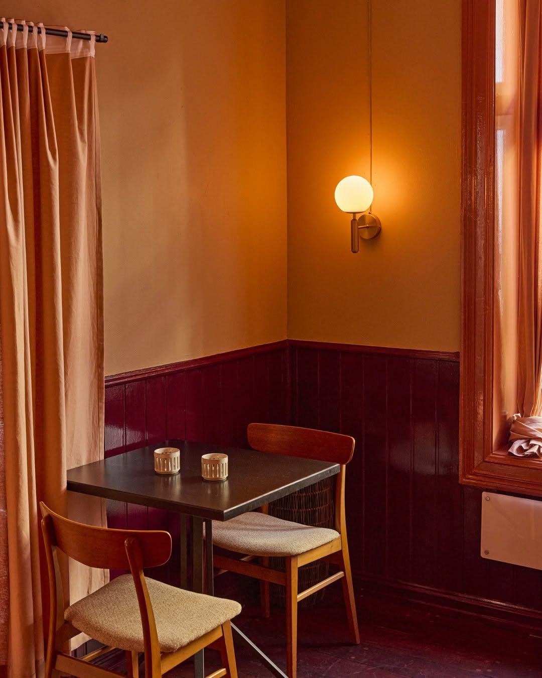 Stemningen er lun og avslappet, og innredningen spedd med en akkurat passe mengde karakterfull pynt og nips. Med sine mørke vegger, levende lys og bløte puter, samt god mat og drikke, skapes de perfekte rammene for en god date – som du også fint kan ta deg selv eller de nærmeste vennene med ut på!
