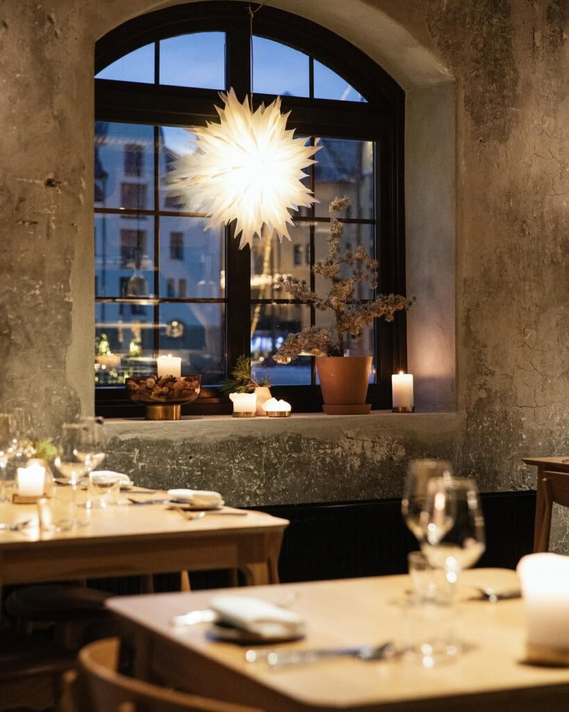 Her kan du spise sammen med en liten gruppe venner eller booke plass til opptil 90 festgalde mennesker for å ringe jula inn, med fantastisk utsikt direkte mot det ikoniske brosundet i Ålesund. Velg mellom 4-rettersmeny til 1095 kroner eller 6-rettersmeny til 1420 kroner, med mulighet for tilkjøp av vinpakke. Les mere om konseptene her, og bestill bord under.