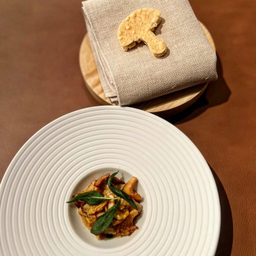 - Kamskjell med sopp, chili og vin jaune