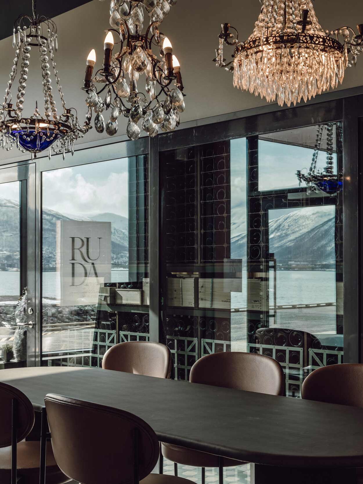 På samme vis som hos sin «storesøster» er innredningen på Ruda behagelig og moderne, og menyen laget på kvalitetsrike sesongråvarer hentet fra de nærliggende områdene. Her får dere servert både hverdagslige favoritter som pølse og fiskesuppe, og finere delikatesser som løyrom og reinsdyr. I restaurantens stilige cocktailbar kan dere i tillegg fritt bestille hva enn dere vil ha å drikke til eller etter maten.