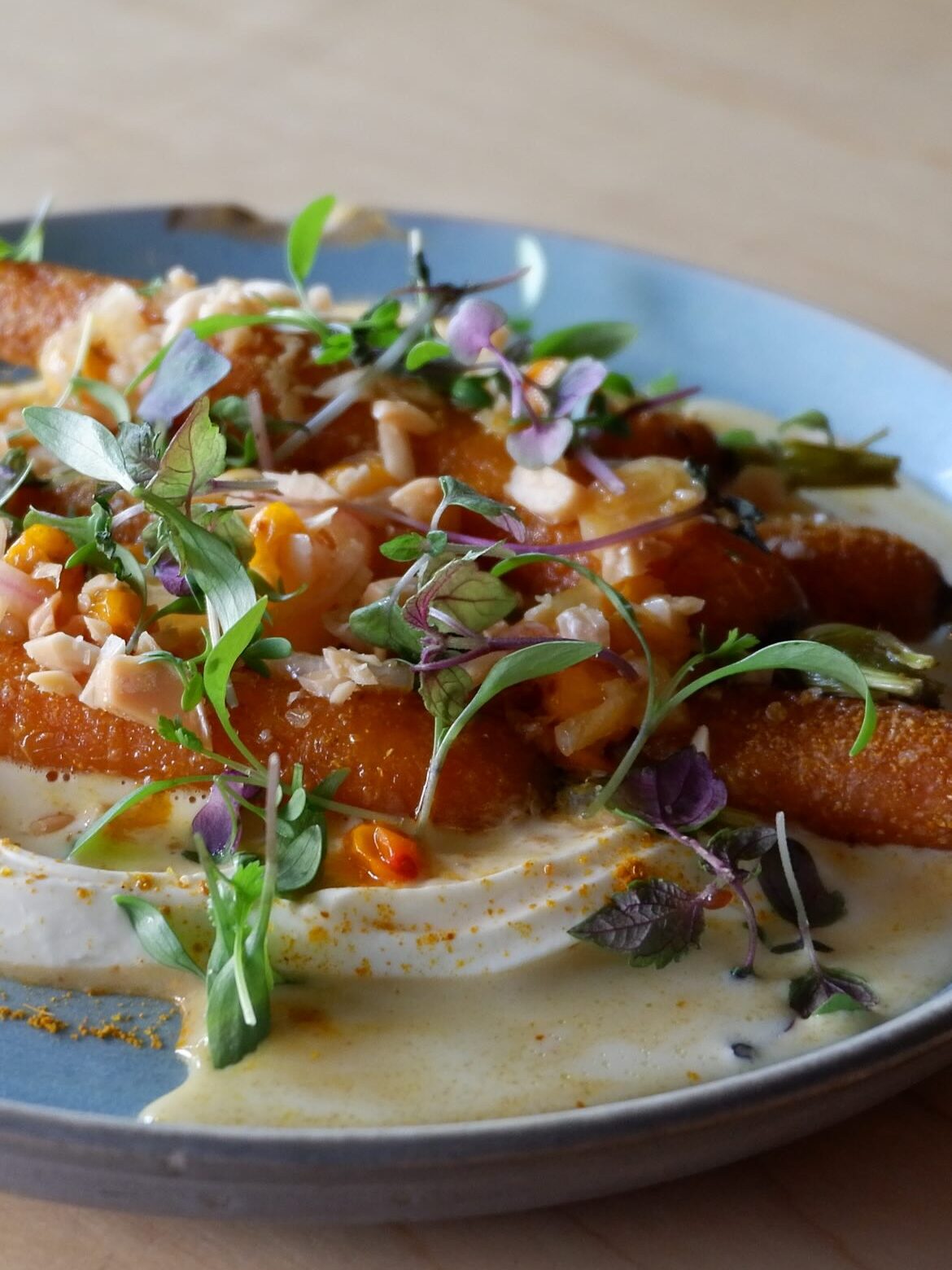- Dagens friterte (skreitunge, hjemmelaget makrellgarum-majones og avruga-kaviar)